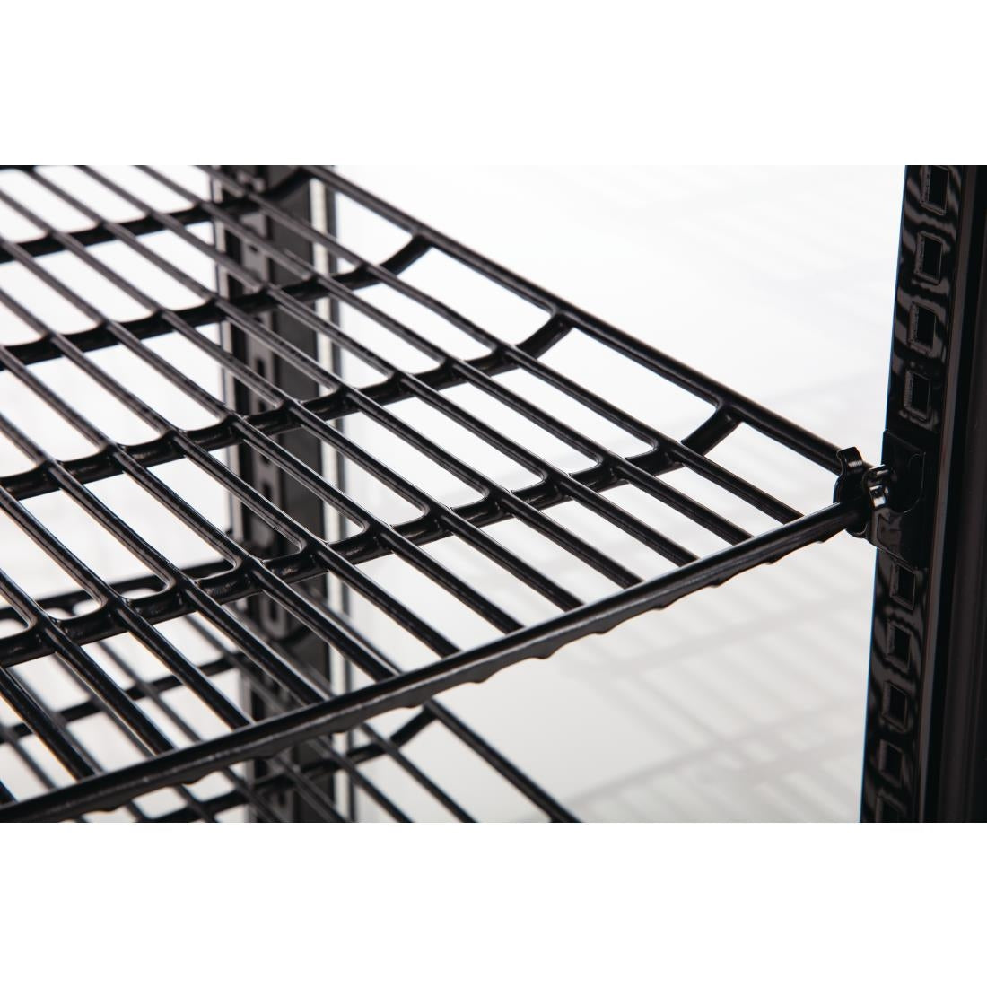 Featuring full 4-sided visibility, internal LED lighting and four adjustable shelves, the unit allows you to create a dynamic, multi-level display tailored to your needs—whether for tall bottled drinks or desserts. Thanks to its user-friendly access and easy-clean design, the fridge is suitable for both self-service and assisted service areas, making it perfect for cafés, delis and takeaway counters.