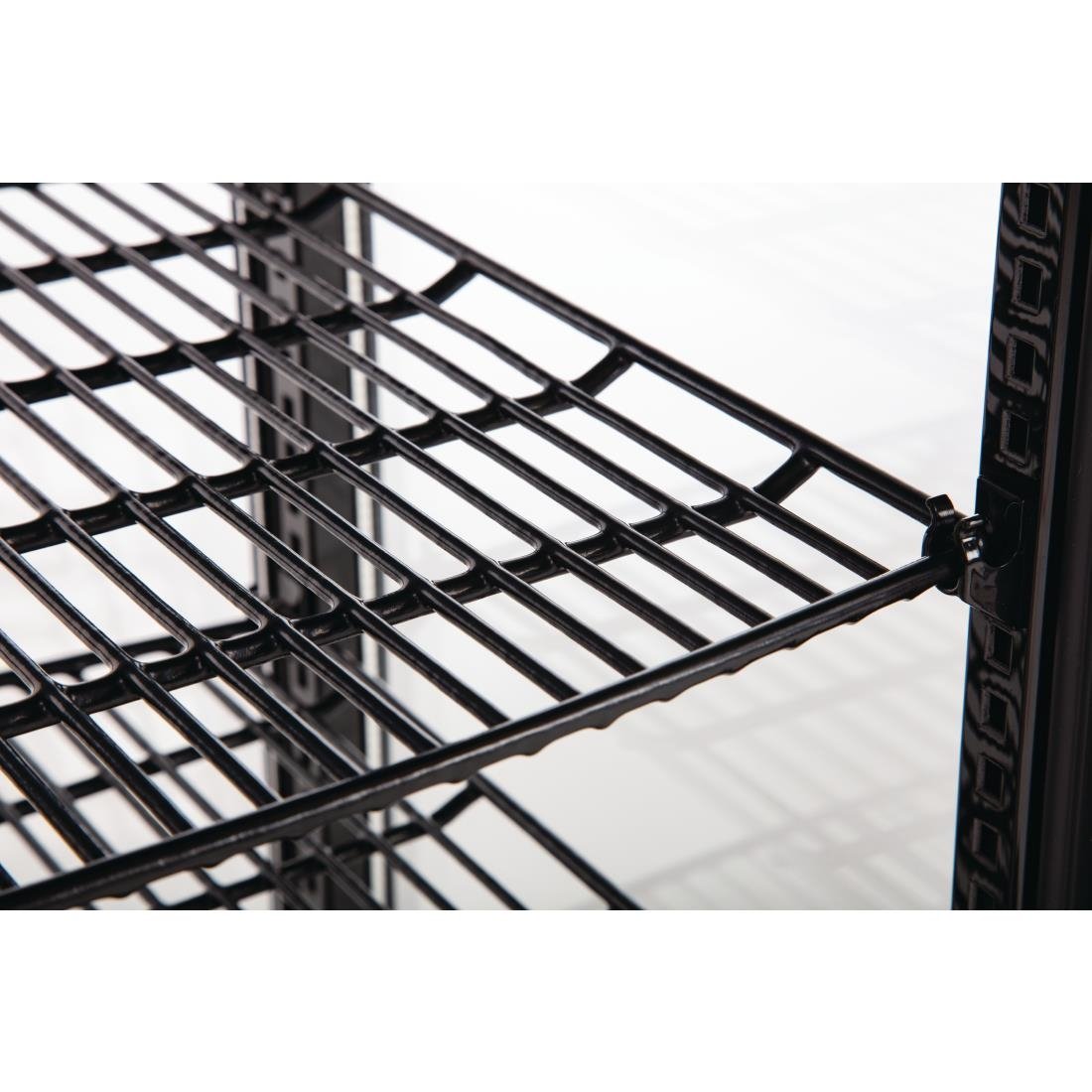 The intuitive rear-mounted digital control panel ensures precise temperature regulation, while the powerful forced air cooling system maintains consistent airflow, preserving product freshness. Compact and space-efficient, this countertop display fridge is ideal for high-traffic areas, maximizing sales while taking up minimal space.