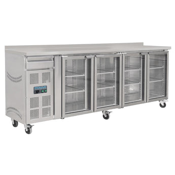 From the premium Polar U-Series range, this four-door stainless steel counter display fridge with 50mm splashback and cutlery drawer is ideal for the busiest bars and pubs. Incredibly versatile and reliable, the bar fridge is the perfect large capacity drinks merchandiser - with stainless steel construction throughout and rounded internal corners, it's both easy to clean and impressively durable.