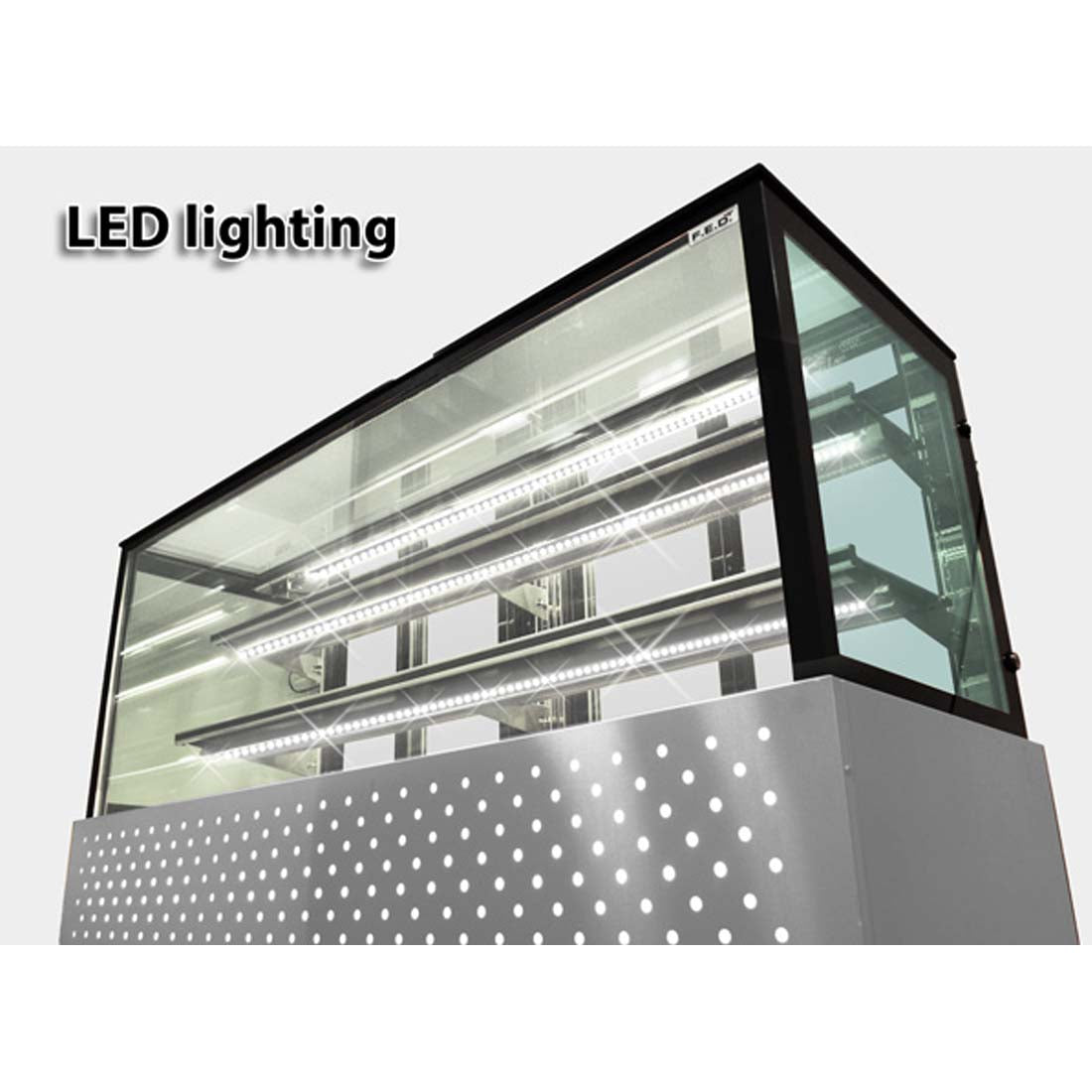This impressive food display is strong and built with almost double the power of the smaller heated display units from Bonvue. This display has two levels of industrial shelving, strong secop compressors for functionality, LED lighting to see inside the interior, self-evaporating drainage to remove moisture, and triple-glazed front with heated filaments all encased within a stainless-steel framework.