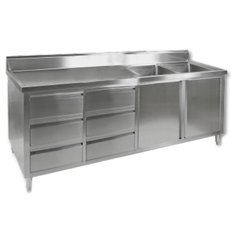 ALL STAINLESS STEEL KITCHEN TIDY CABINET WITH SINK, DOORS & DRAWERS