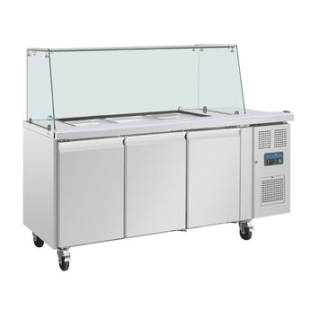 Polar U-Series GN Counter Saladette with Square Sneeze Guard - 3 Door