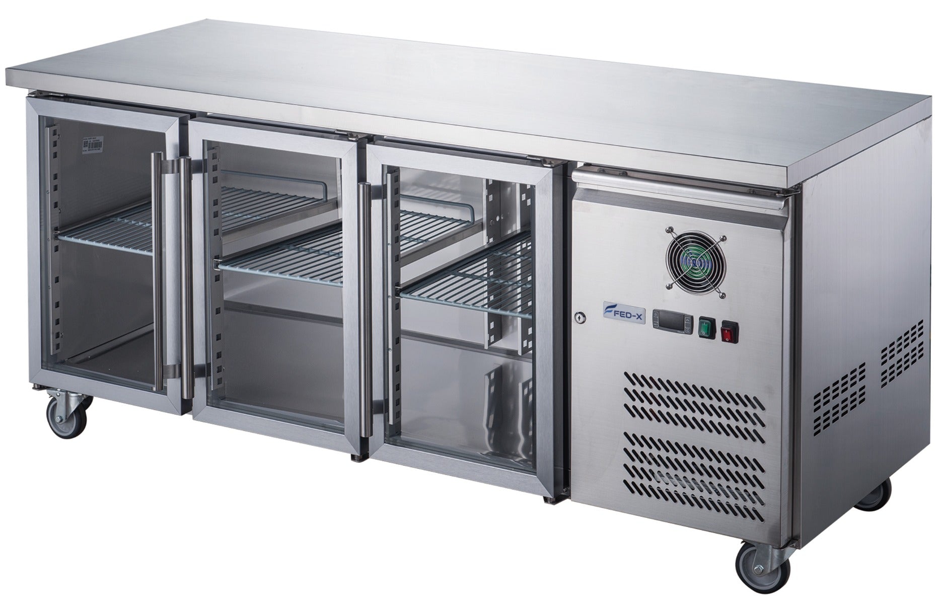 FED-X Three Glass Door Bench Fridge Stainless Steel - XUB6C18G3V