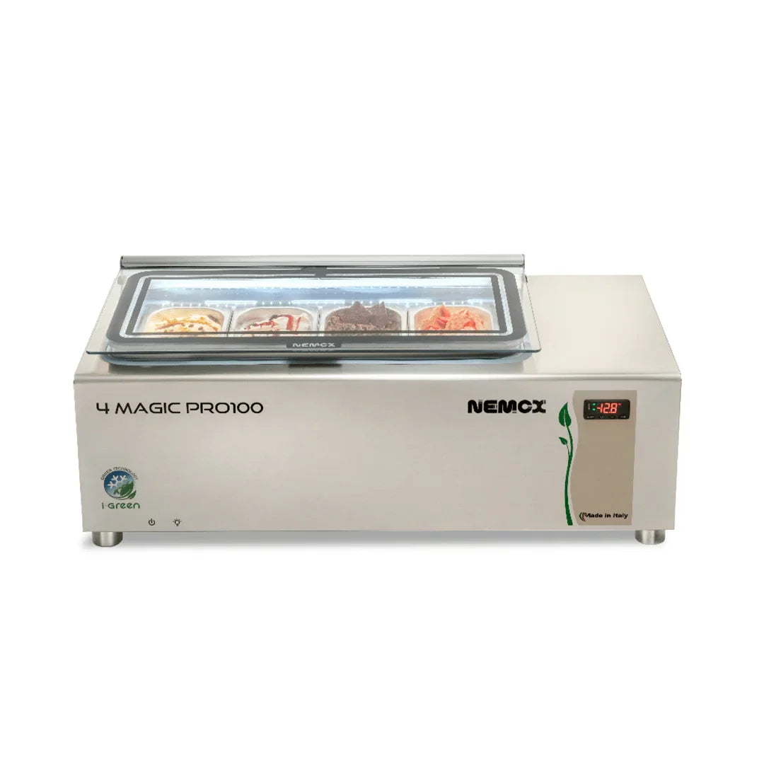 - Electronic programming and display allows the user to select and set desired serving temperature.